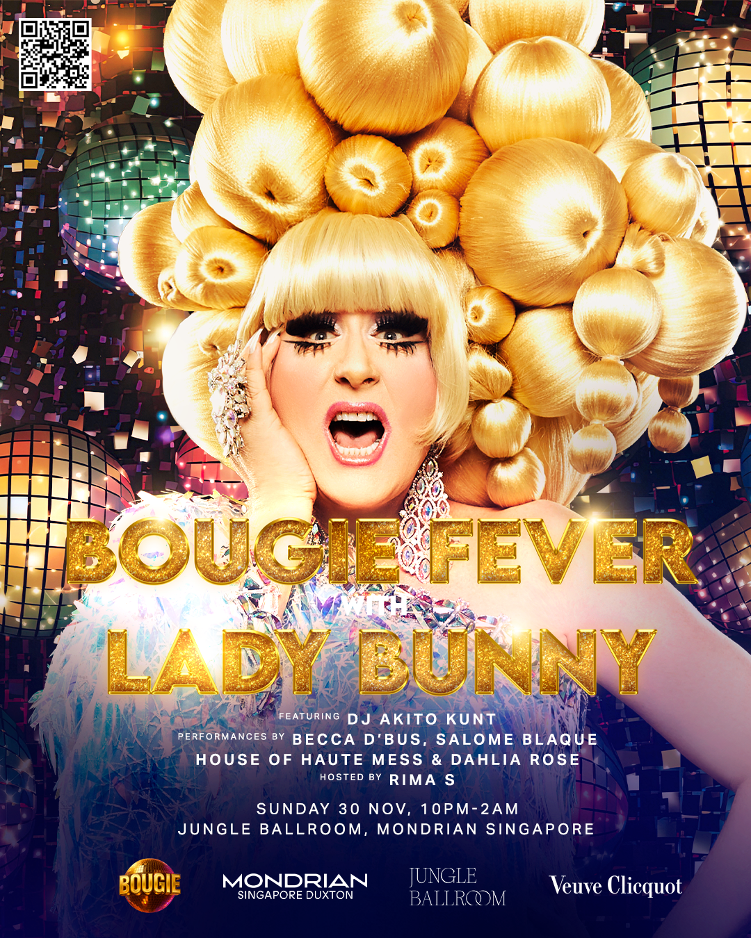 DJ LADY BUNNY, New York City's legendary iconic, internationally loved singer, actress, jet-set DJ & founder of the infamous annual Wigstock event spins a night of DISCO, drag and dramatics for the very first BOUGIE FEVER!